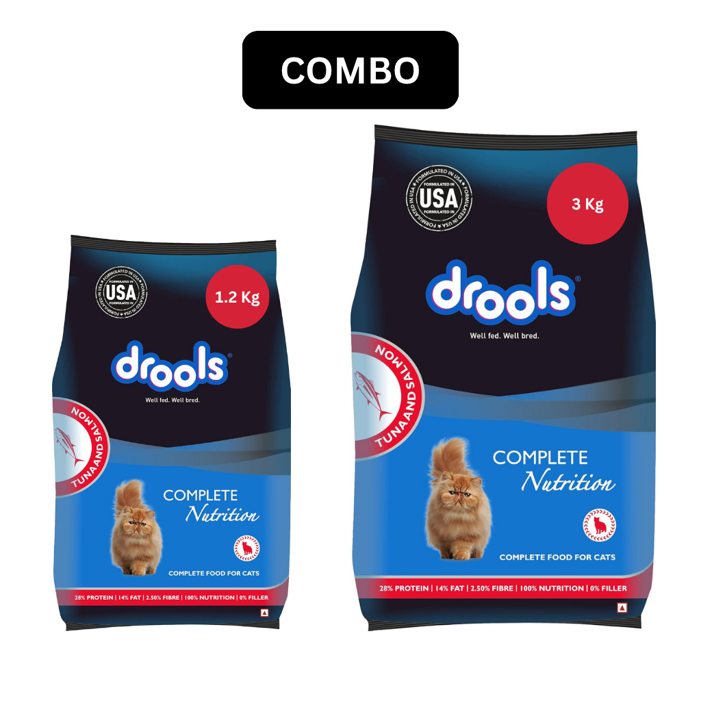 SKU: Drools Adult Tuna & Salmon Dry Cat Food Combo 1.2 Kg + 3 Kg