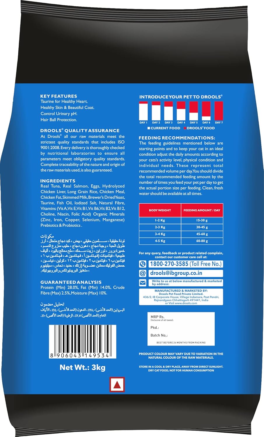A complete and balanced diet crafted for adult cats with a delicious blend of tuna and salmon. Rich in high-quality protein to support strong muscles and overall health. Enriched with essential vitamins, minerals, and antioxidants to boost immunity and vitality. Supports healthy digestion and helps maintain a shiny coat and healthy skin. A tasty and nutritious choice for your cat’s daily diet.