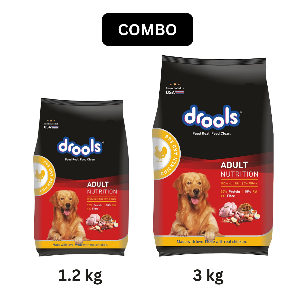 SKU: Drools Chicken And Egg Adult Dog Dry Food Combo 1.2 Kg + 3 Kg