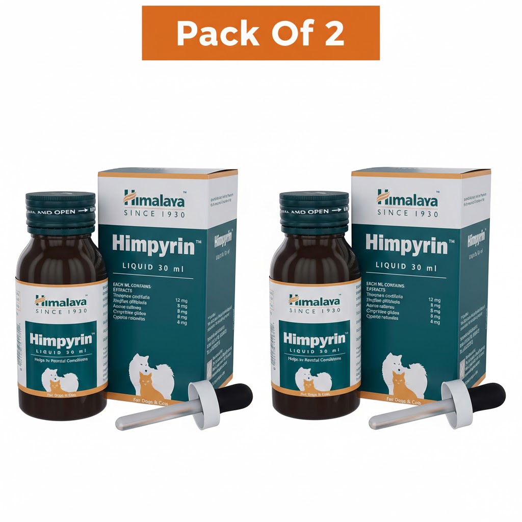 Himalaya Himpyrin Liquid is a clinically tested herbal anti-inflammatory and pain relief supplement for dogs and cats. Formulated with natural ingredients like Tinospora gulancha (Guduchi) and Sweet Flag (Vacha), it helps strengthen the immune system, reduce fever, relieve pain, and improve blood circulation. Ideal for supporting recovery after injury or surgery, this liquid formulation promotes comfort and overall wellbeing in pets when used as directed by a veterinarian.