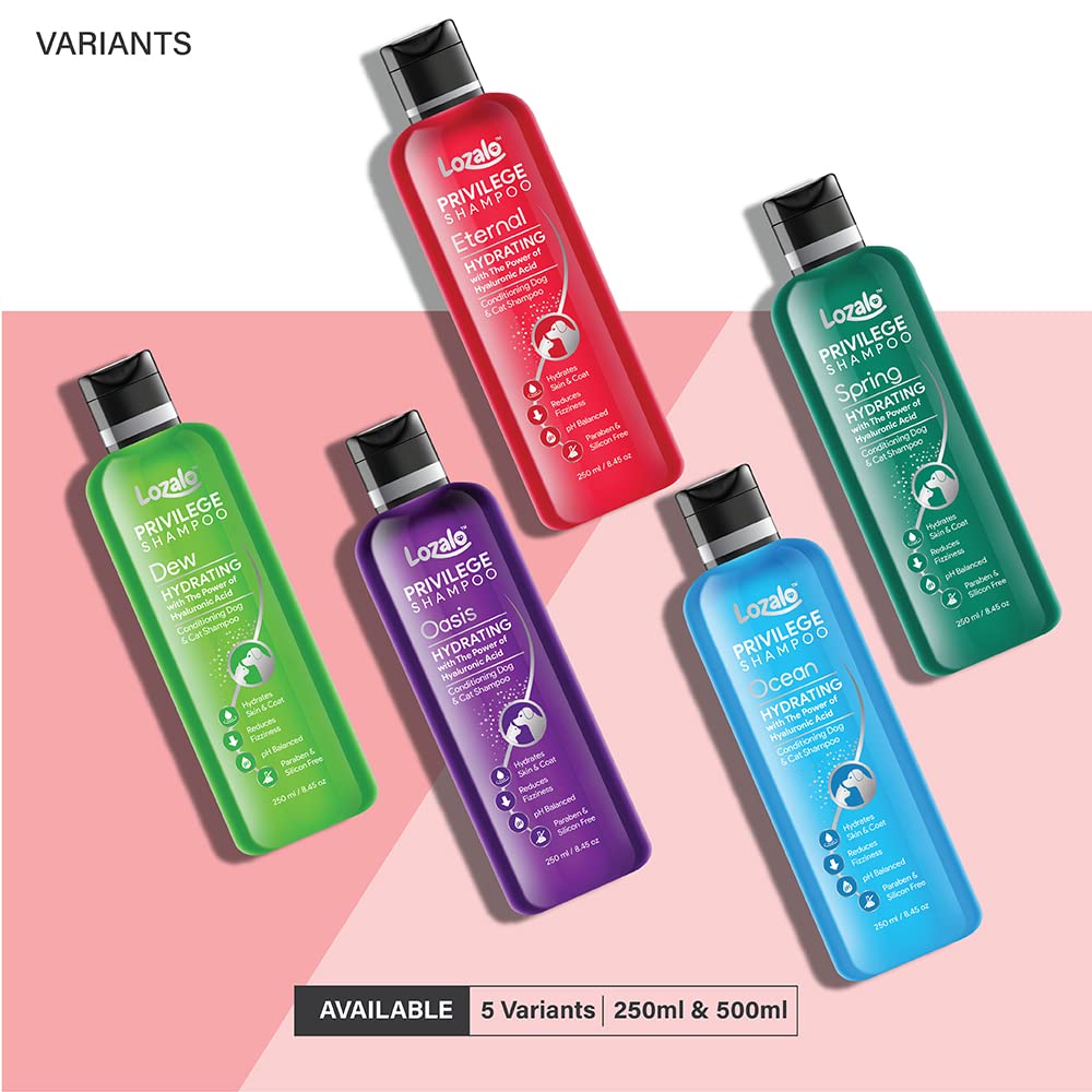 Lozalo Privilege Shampoo is a gentle, premium-care formula designed to keep your pet?s coat clean, soft, and healthy. Enriched with soothing ingredients and balanced pH, it helps reduce dryness, removes dirt and odour, and leaves the fur shiny with a long-lasting fresh fragrance. Suitable for regular use on both dogs and cats, it nourishes the skin while maintaining natural oils ? perfect for pets with sensitive coats.