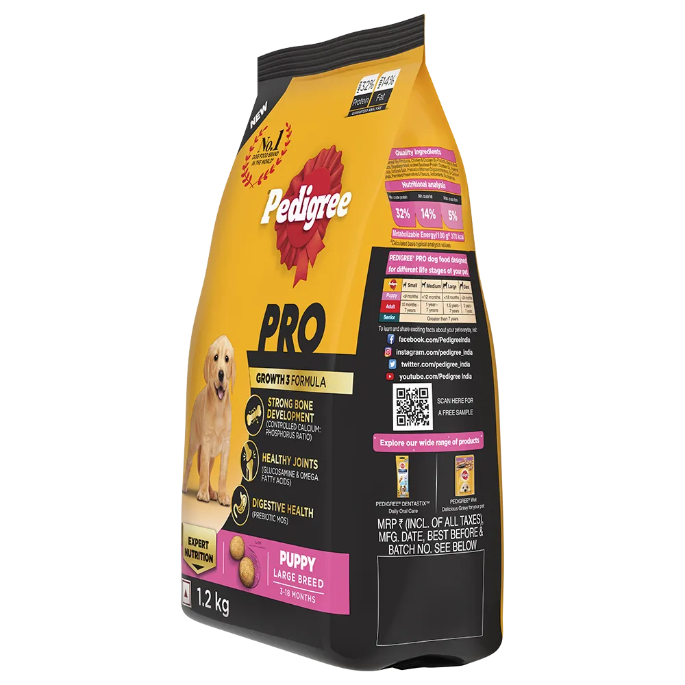 SKU: Pedigree Pro Puppy Large Breed | Pack of 3 | 1.2 kg x 3
