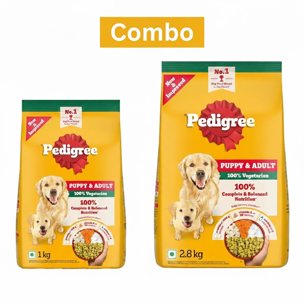 SKU: Pedigree Puppy & Adult 100% Veg Combo (1 kg + 2.8 kg)