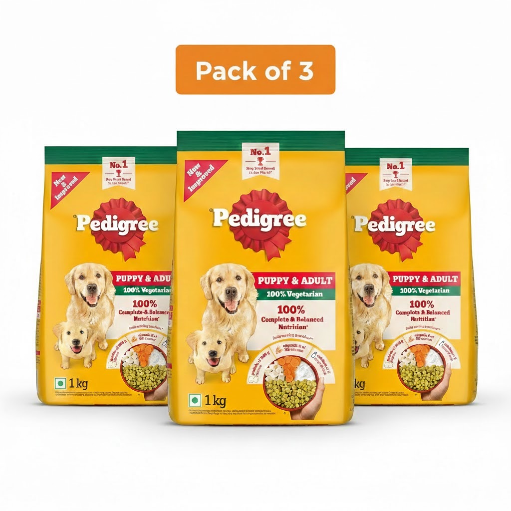 SKU: Pedigree Puppy & Adult 100% Veg Pack Of 3 (1 kg Each)