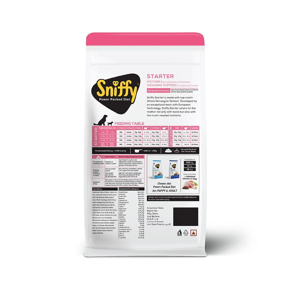 Sniffy Starter Combo (800gm × 3) offers complete starter nutrition for puppies and mother dogs, supporting healthy growth and immunity.